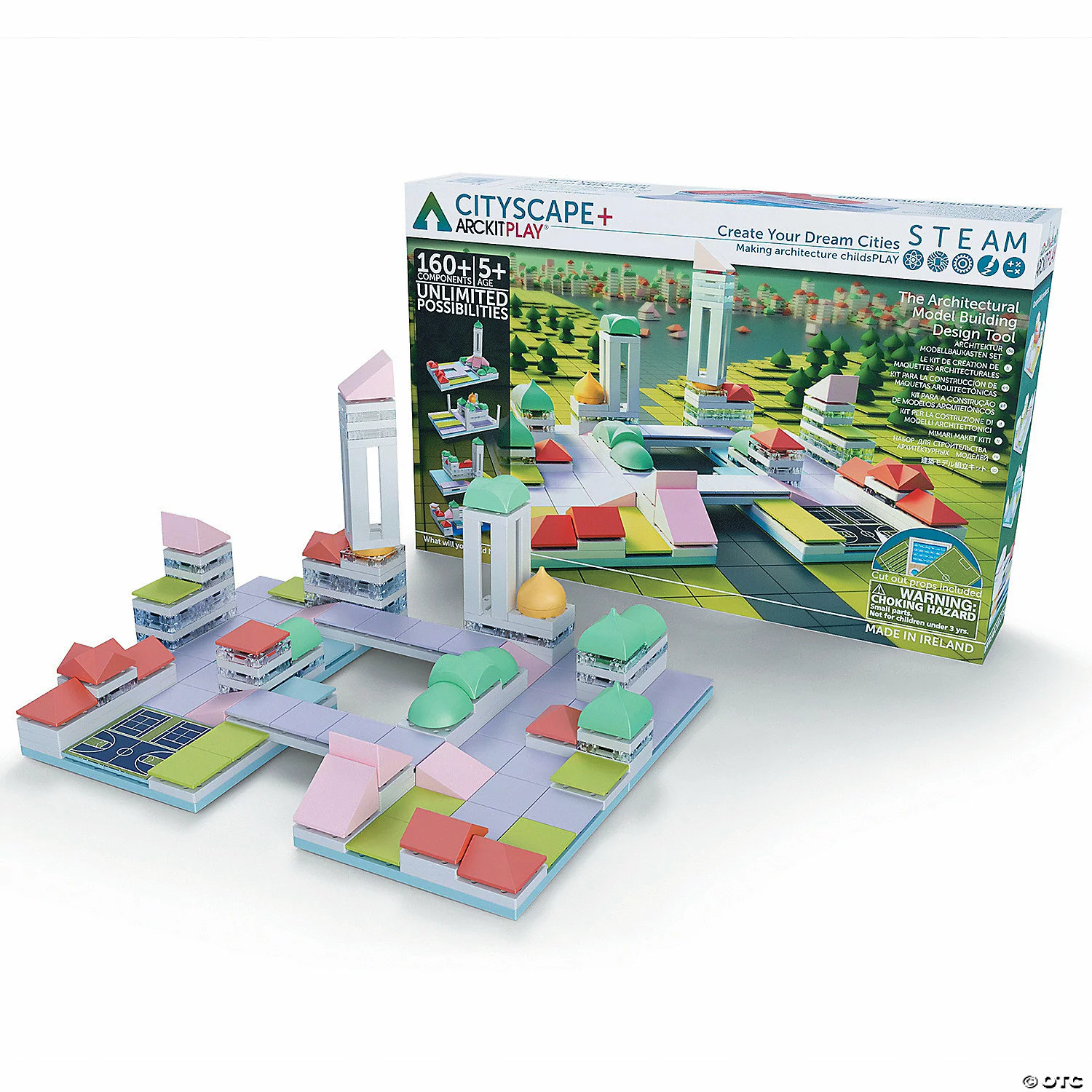 Watch your budding architect’s skills stack up with these imaginative model-making systems. CityScape uses slim, flat stacking plates and tiles to build a mini scaled model of a city block or street. Create modern office buildings with banks of windows, skyways, courtyards, pastel rooftops and more. Large floor plates and easy click-and-connect pieces make this the perfect starter set for young designers ready to bring 3D projects to life.• Design and create your own city with this imaginative system• Components are reusable with quick assembly for unlimited possibilities• Encourages creative thinking, communication of design, problem solving skills and skill advancement in STEAM• Includes over 155 colored interlocking pieces and free access to the Arkitexture Library and Arckit Digital