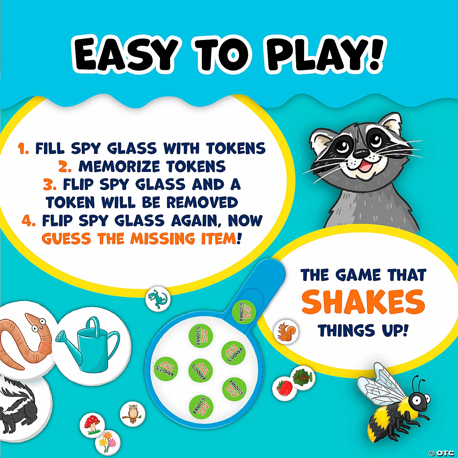 Bandit the Raccoon encourages kids to shake things up in this fun, mixed-up game that tests memory. The first player to correctly identify which object is missing from the garden wins! Easy to learn, with variations that allow for solo and larger group play. • A colorful memory game that can be played alone or in a big group• Kids learn memory skills, turn-taking, visual discrimination• Includes 1 spy glass, 50 garden tokens and instructions