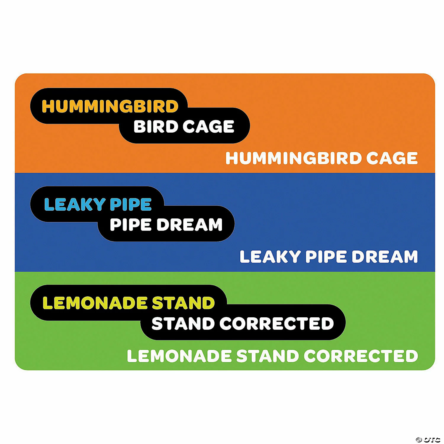 Get ready for you and your family to laugh and come together like never before. Burst Out Laughing Gas is a hilarious family board game in which you or your partner grabs a card featuring two common phrases and has to give clues to each while the other has to not only figure out the separate phrases but also put them together to create the combined solution, or combolution. Each combolution solved before the time runs out will earn your team a Speak Your Piece of Cake scoring token, and the first team to get 20 tokens wins! Burst Out Laughing Gas is a great way to bring families closer by acting silly and having fun together. For 4 or more players. • Four or more players• Hilarious fun for the whole family• Come up with creative ways to get your partner to guess correctly• Teaches: creative thinking, cooperative play, instruction following• Comes with: 385 cards, timer, 40 Speak Your Piece of Cake scoring tokens, rules