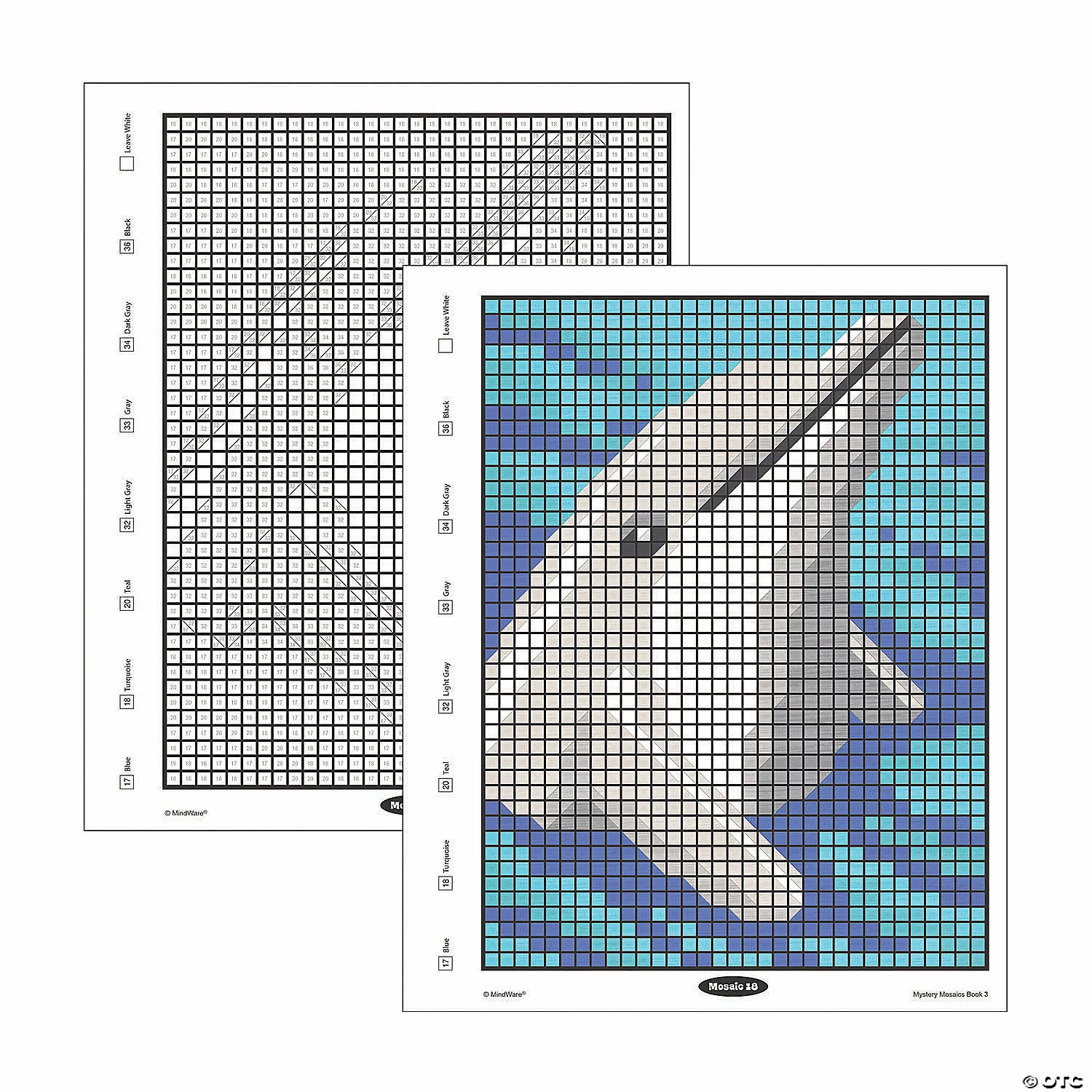 Designed to build the visual perception skills of the most creative puzzlers, Mystery Mosaics: Book 3 is filled with 18 amazing images disguised as numbered squares. At first glance, you will have absolutely no clue what each completed picture might turn out to be…follow the number guide, apply color, and watch an incredible mosaic design take shape! Featuring 18 perforated pages including 4 fold-out, 10″ x 15″ double-page spreads, this new book pairs perfectly with our brilliantly-hued, 36-count Colored Pencil Set (sold separately). The book and pencils are printed with coordinating numbers to make your coloring experience even more relaxing and enjoyable. Download Sample Page