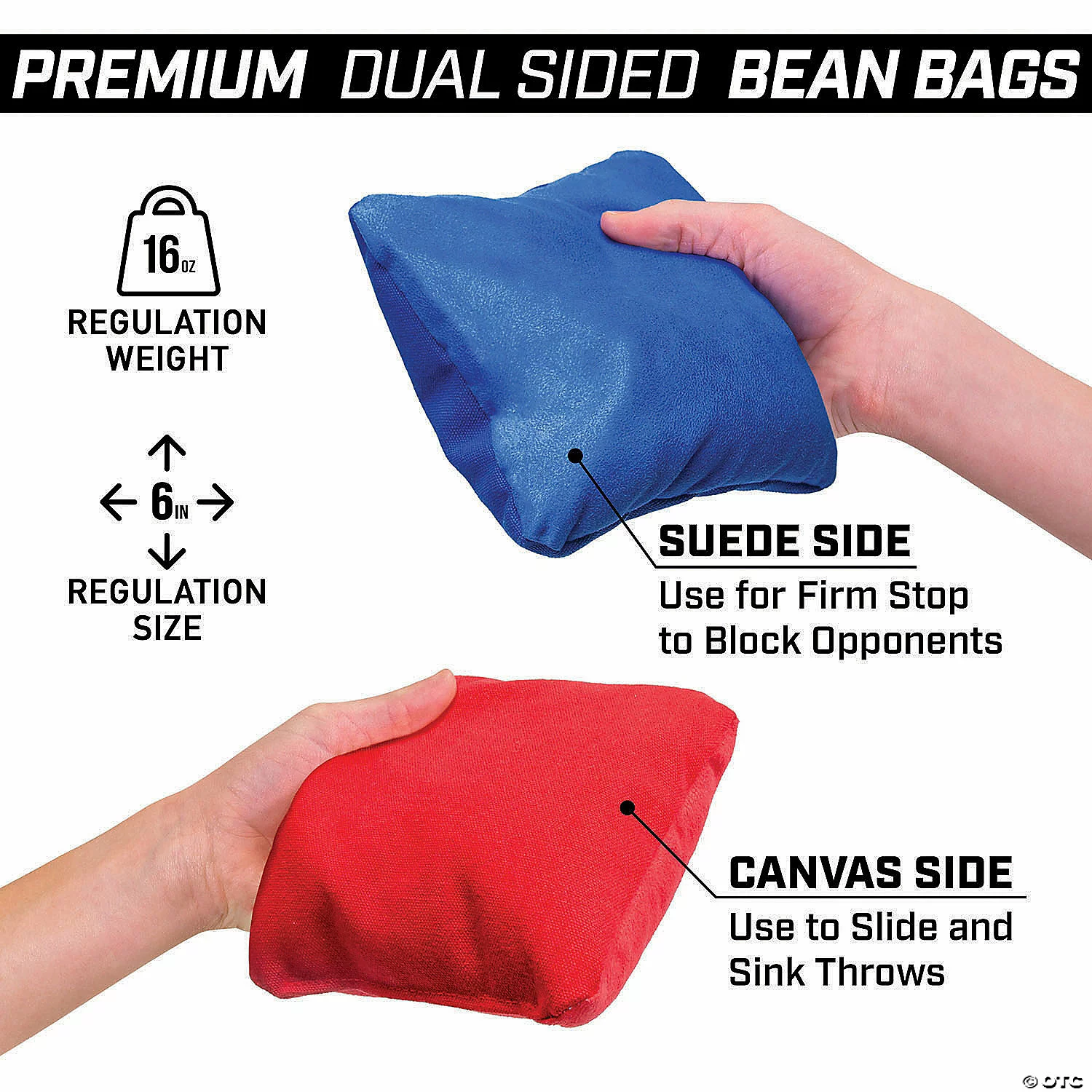GoSports Tournament Edition Dual Sided Cornhole Bean Bags include specialized Slick and Stick surfaces that give players the option of throwing a bean bag that slides, or one that sticks. The slick side is made from traditional duck canvas, allowing the bean bag to slide on the cornhole board surface, which is great for scoring and knocking around opponent’s bean bags. The stick side is from from faux suede which reduces sliding and grips onto the playing surface, resulting in a firm stop when the bean bag lands on the board. Having the option to throw a bean bag that sticks can be advantageous when precision is crucial and blocking your opponent. Filled with plastic pellets designed for optimal feel for authentic play that will never rot or attract critters. Special Shipping Information: This item ships separately from other items in your order. This item cannot ship to a P.O. Box. This item may be subject to additional processing days. ITEM IS NOT ELIGIBLE FOR EXPEDITED SHIPPING You may initiate a return for unused items within 30 days, if the items are in original packaging with all original materials included with the shipment.