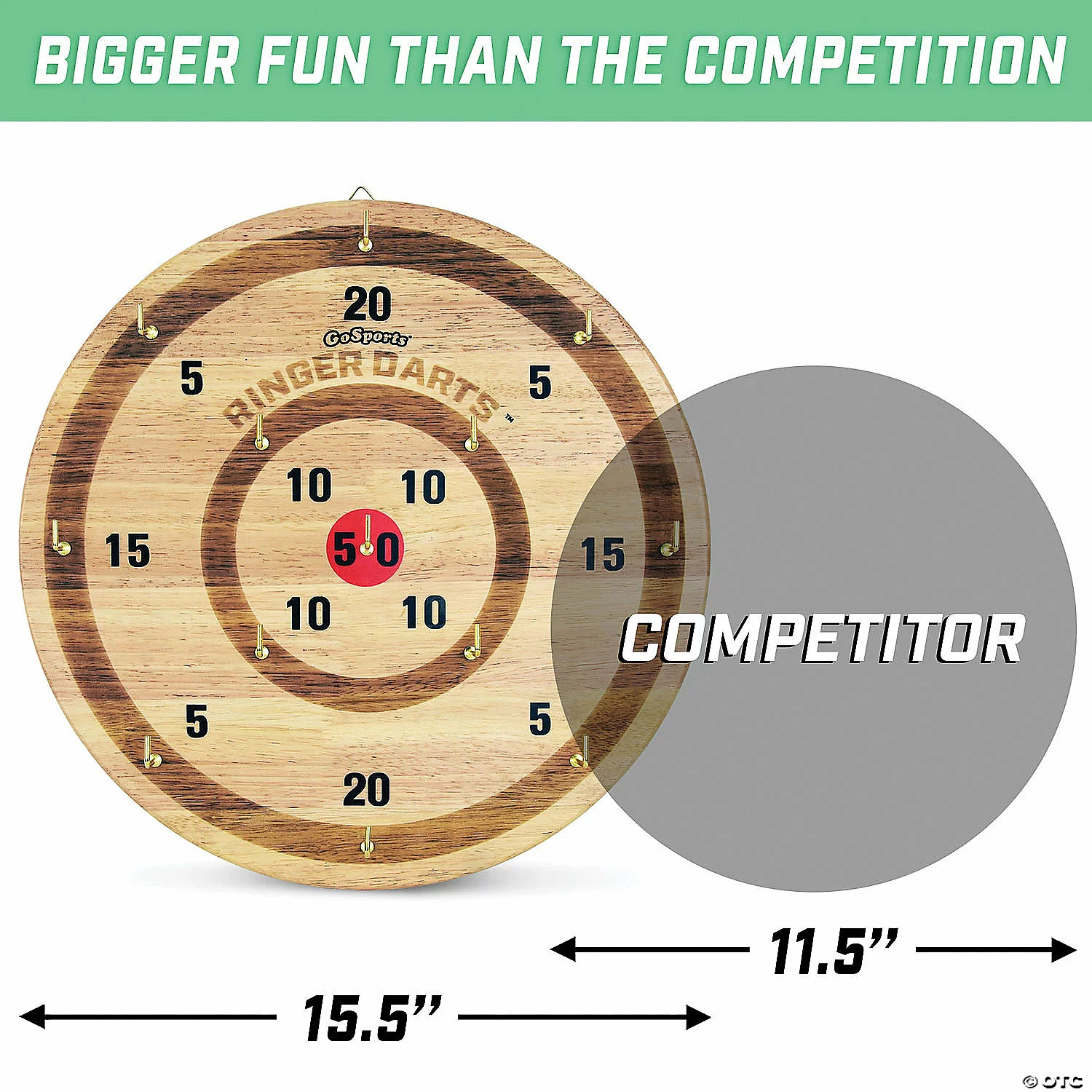 Bring the fun of Ringer Darts home! Ringer Darts is a new and exciting combination of darts and ring toss that is guaranteed to be an instant classic with friends and family! Ringer Darts features 3 fun ways to play which means getting hooked on this ring toss style game is fun and easy for all ages and skill levels. 2-4 players can fling their rings at the Ringer Darts board to rack up points for the ultimate title of Ringer Darts champ! Set up is easy for your next indoor game night or outdoor even and Ringer Darts is safe and kid friendly so everyone can join the fun. Ringer Darts includes 1 Ringer Darts game board measuring 15.7” x 1”, 16 rings (4 of each color), 1 Dry Erase Scoreboard and Mounting Screw. Now take the Ringer Darts challenge! Special Shipping Information: This item ships separately from other items in your order. This item cannot ship to a P.O. Box. This item may be subject to additional processing days. ITEM IS NOT ELIGIBLE FOR EXPEDITED SHIPPING