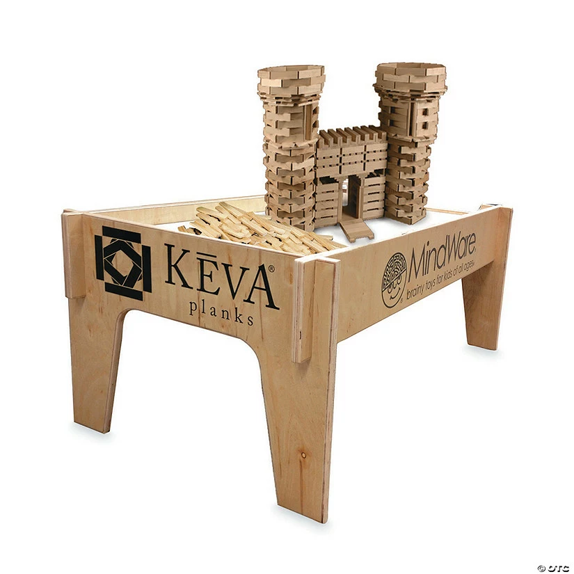Use the KEVA play table to keep your constructions elevated and safe. Notched table sections easily slide together–no tools required. The entire perimeter of the table has a raised edge to prevent planks from sliding off, so your building area stays neat and tidy. Assembled table measures 19″D x 42″W x 20″H. This item ships alone in its own packaging that may reveal its contents. Download FREE Educator’s Guide