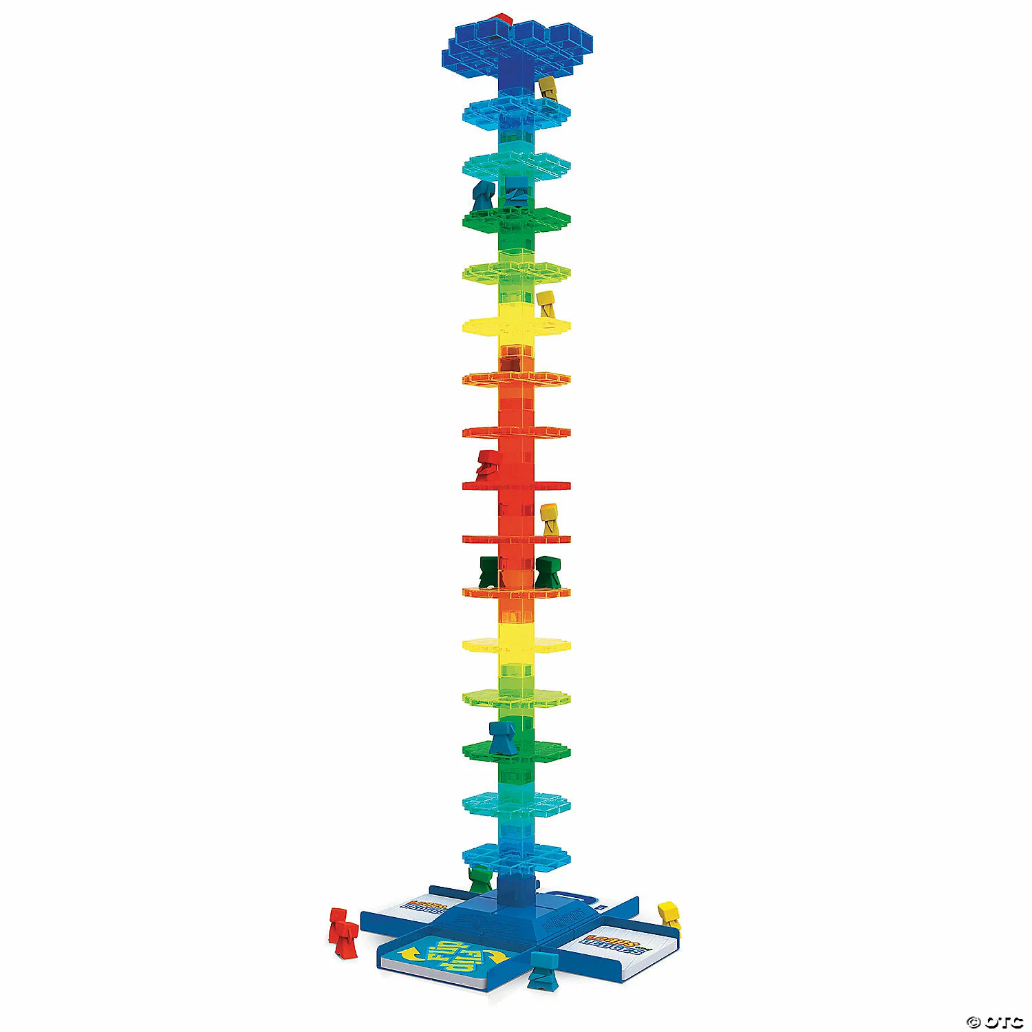 Take friendly competition to a new level as you race your opponents to the top of this colorful tower! Leaps and Ledges™ puts a twist to the traditional board game with its intriguing design—sending daring players up and down instead of around. Play your cards just right to move your pawns up in small steps or big leaps—but beware; only pawns of the same color can occupy a level. Some cards allow you to sabotage your opponents by sending them down levels or by knocking them off completely. Watch out for sneaky players on a rampage—they will knock everyone off on their way up! Wild cards add suspense to the mix by knocking opponents backwards or forcing them to overshoot the top crown. To be safe, move your pawns in pairs and protect them from attacks. The first player to get all four of their pawns to the top is the tower champion! With multiple strategy tricks to learn, you’ll be tempted to challenge family and friends again and again! For 2 to 4 players. • Strengthens math, strategy and problem-solving skills• Fast pace family game that’s adaptable to a wide range of ages and skill levels • Sturdy base, 15 colorful platforms, tower crown, 72 playing cards and 15 pawns • Cards are numbered 1-12 plus four types of specialty cards: “Flip, Rampage, Wild and Precision” Download Instructions