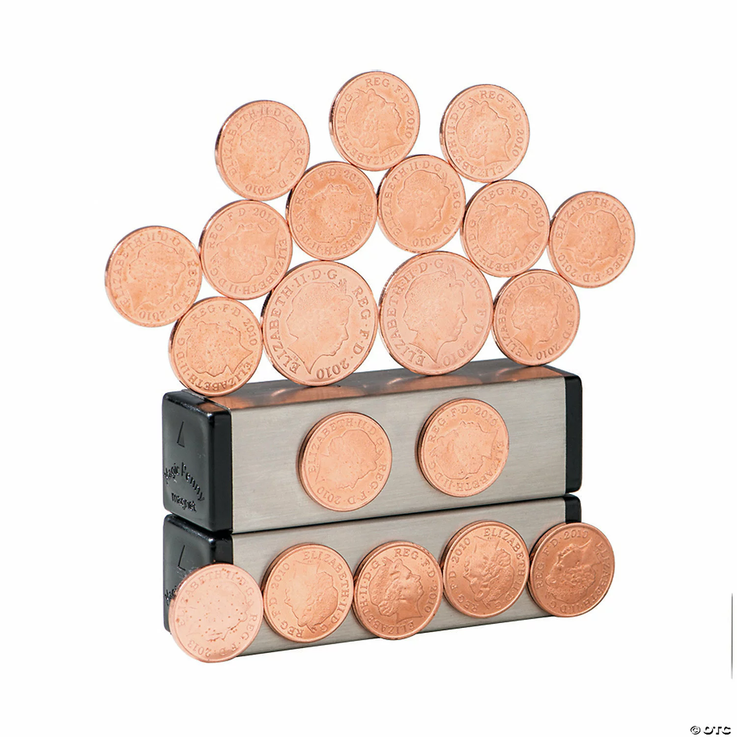 Make a coin go head over heels in two directions at once, spin at over one thousand revolutions a minute, walk a tightrope and somersault on a bridge! Balance four coins on the rim of a teacup, too! Learn to build levitating pyramids, rocket launchers, airplanes, rotating earrings, nodding birds and floating balloons. Includes two strong Magic Penny magnets encased in stainless steel, 32 newly minted British coins, one U.S. penny, plus an activity booklet with 44 projects.