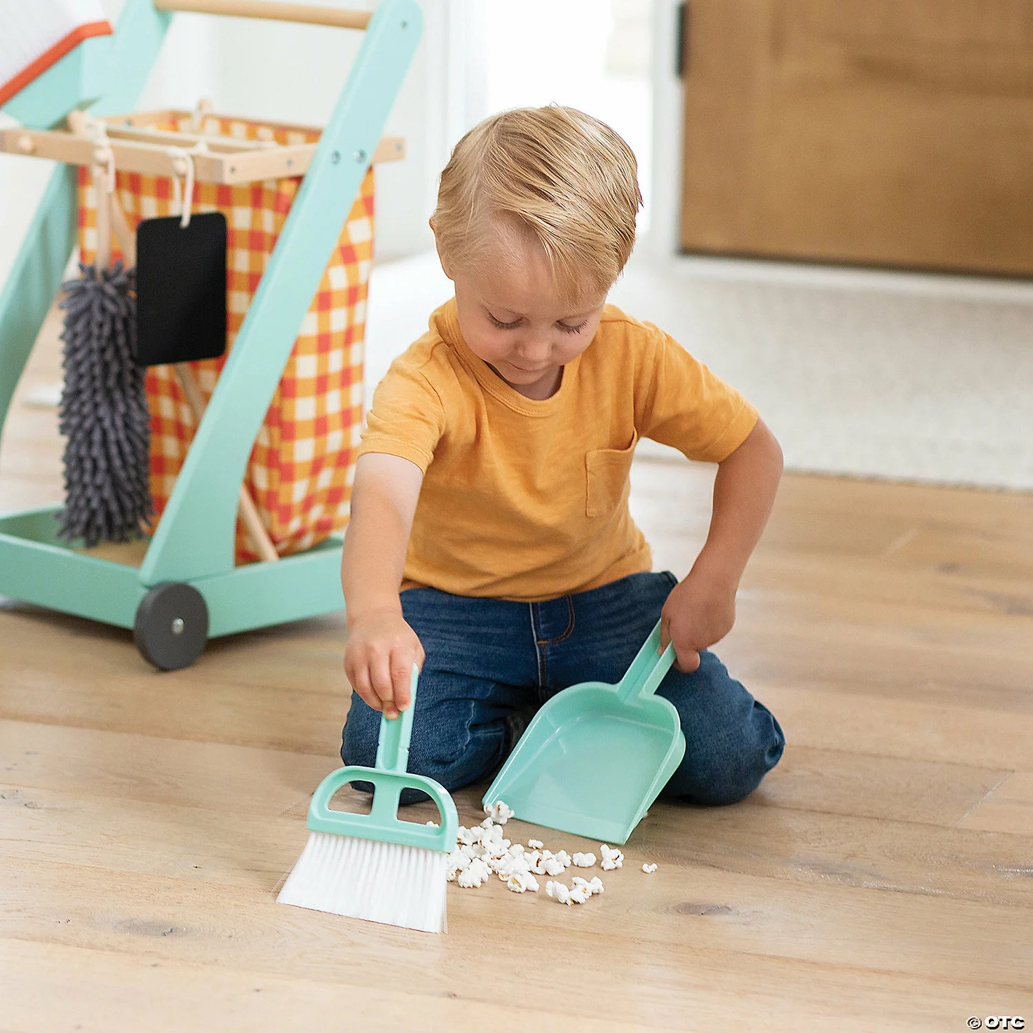 Make chore time fun! Little helpers will have a blast tidying up just like their favorite grown-ups with this all-in-one cleaning set. The rolling Oh So Fun! Cleaning cart is constructed of sturdy wood and equipped with a collection bag for picking up toys, floor broom, hand broom with dust pan, microfiber duster and chalkboard to-do list. Made from the same materials as real household cleaning tools, these kid-sized accessories are not only fun to play with – they can really clean!• Encourages pretend play, engages the imagination and develops fine-motor skills, patience, and coordination• Sturdy wooden construction will hold up to years of play• Includes a rolling cleaning cart, fabric collection bag, floor broom, hand broom with dust pan, microfiber duster and chalkboard to-do list• Quality kid-sized tools make cleaning fun• Handle bar height is 22.5” tall. Cart measures 13.5” wide and 15” deep