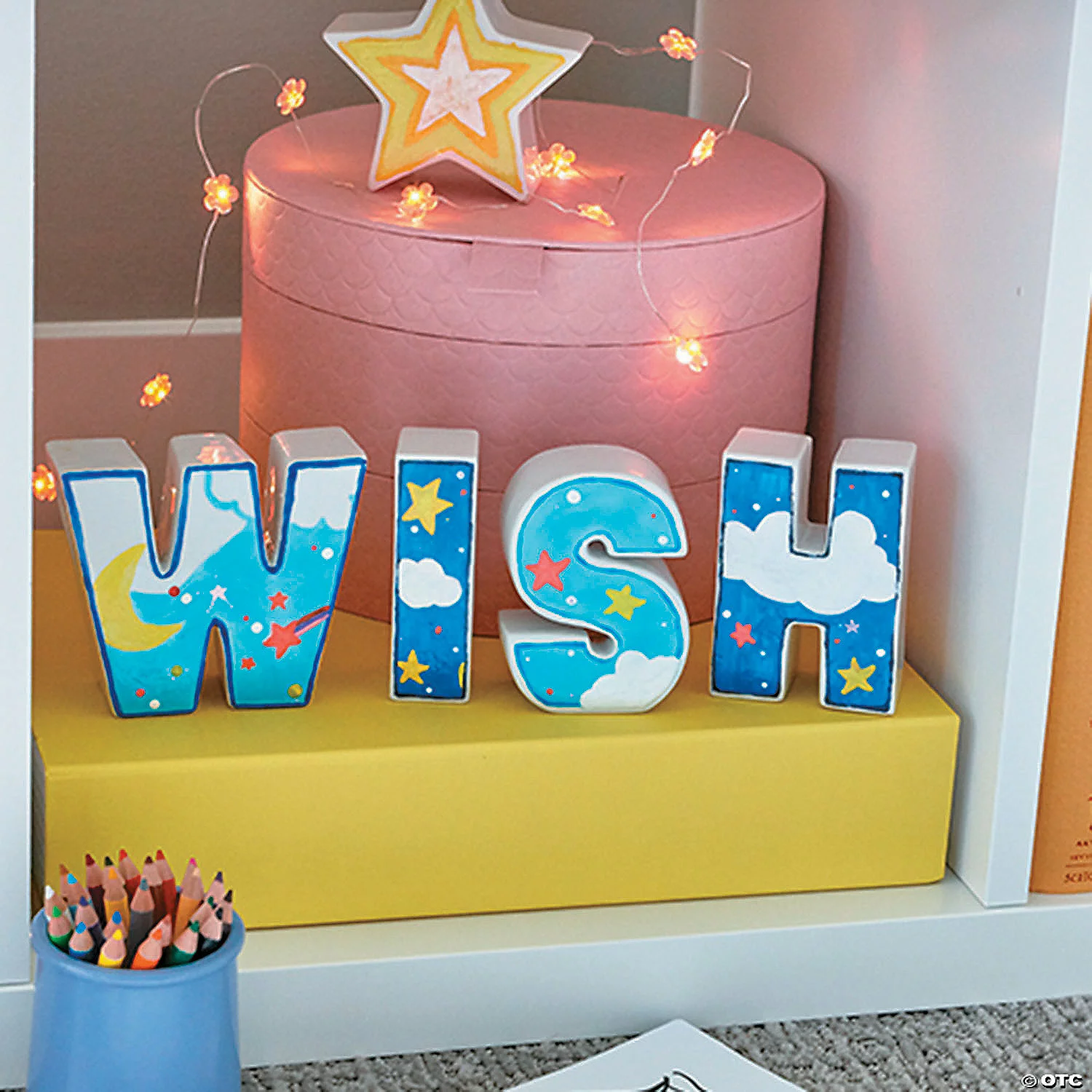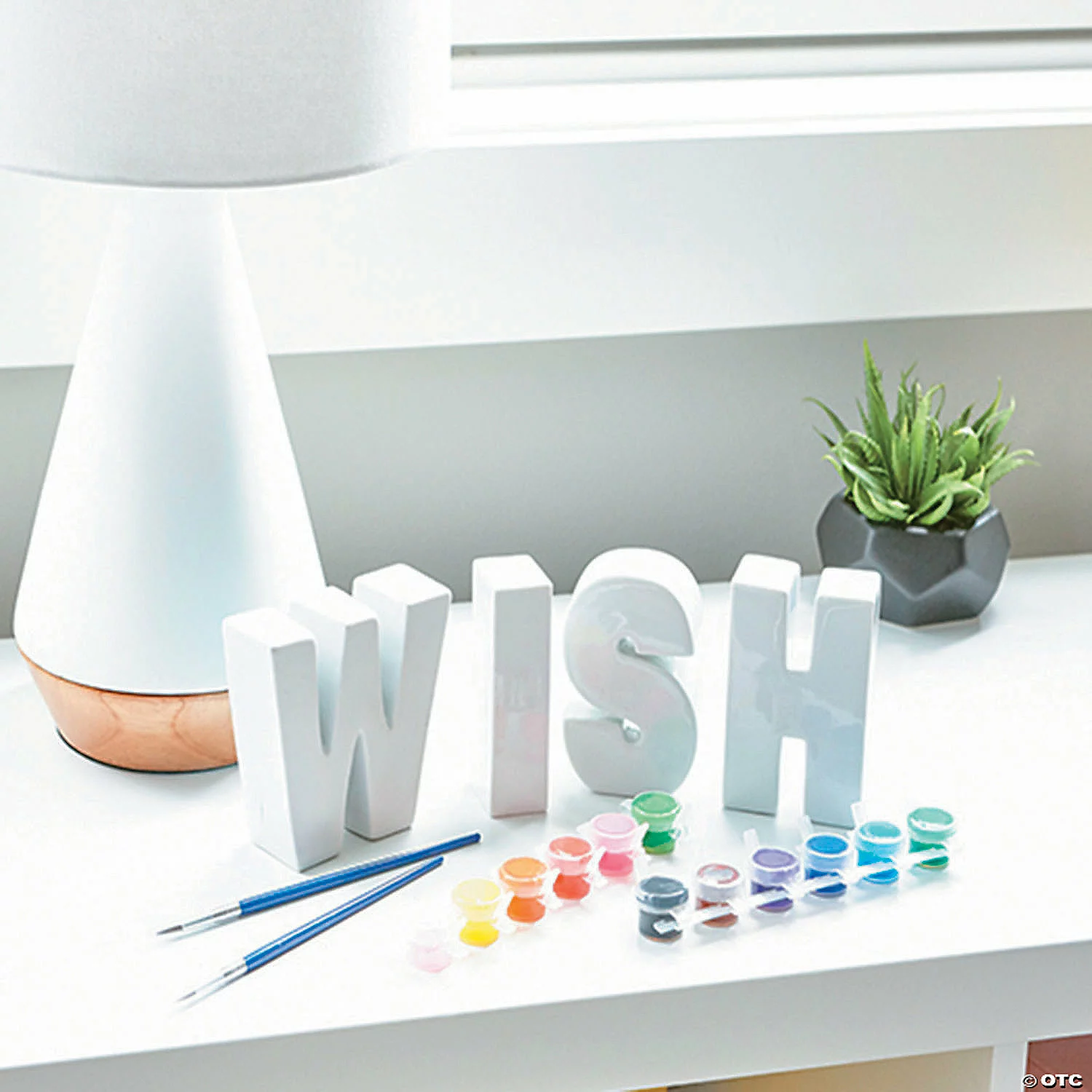 Make all your dreams come true with high-quality porcelain letters you paint with your own creative touch! The accent porcelain star provides a large space to paint a picture of just what you are wishing for. Each porcelain piece measures 5 inches tall and the complete kit includes 12 paints and 2 brushes – one wide brush for quick coverage and one thin brush for creating details. The instructions are filled with design tips and painting tricks for guaranteed beautiful results. For a more lasting finish, bake the porcelain in the oven as the final step. Note, even after baking, design is not permanent. Dust with a dry cloth to clean.