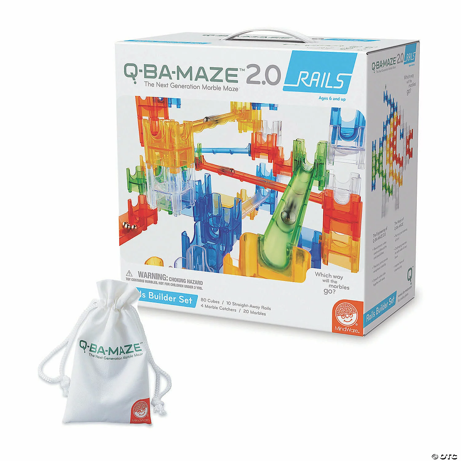Q-BA-MAZE is a unique system of colorful cubes that interlock to form an exciting marble run. The big difference? The configurations are UNLIMITED: create runs shaped like rockets, robots, butterflies, or whatever design you want!This kit includes:The Q-BA-MAZE Rails Builder Set with 10 straight-away rails that connect easily to any cube or to each other to create tracks that send your marbles zigzagging through the maze! With 40 single-exit cubes, 20 bottom-exit cubes, 20 double-exit cubes, 4 marble catchers and 20 marbles, the possibilities are endless!• Revolutionary cubes create endless paths and artistic build possibilities• Encourages imaginative thinking, STEAM skills and cooperative play• Follow the step-by-step directions or experiment with your own original creations• Well-crafted and durable pieces are made from phthalate-free and BPA-free ABS plastic• Double exit cubes allow for several different pathways!• Marbles are nickel plated steel balls. They are not magnets.Age Recommendation: Ages 6 and upWatch The Building Basics
