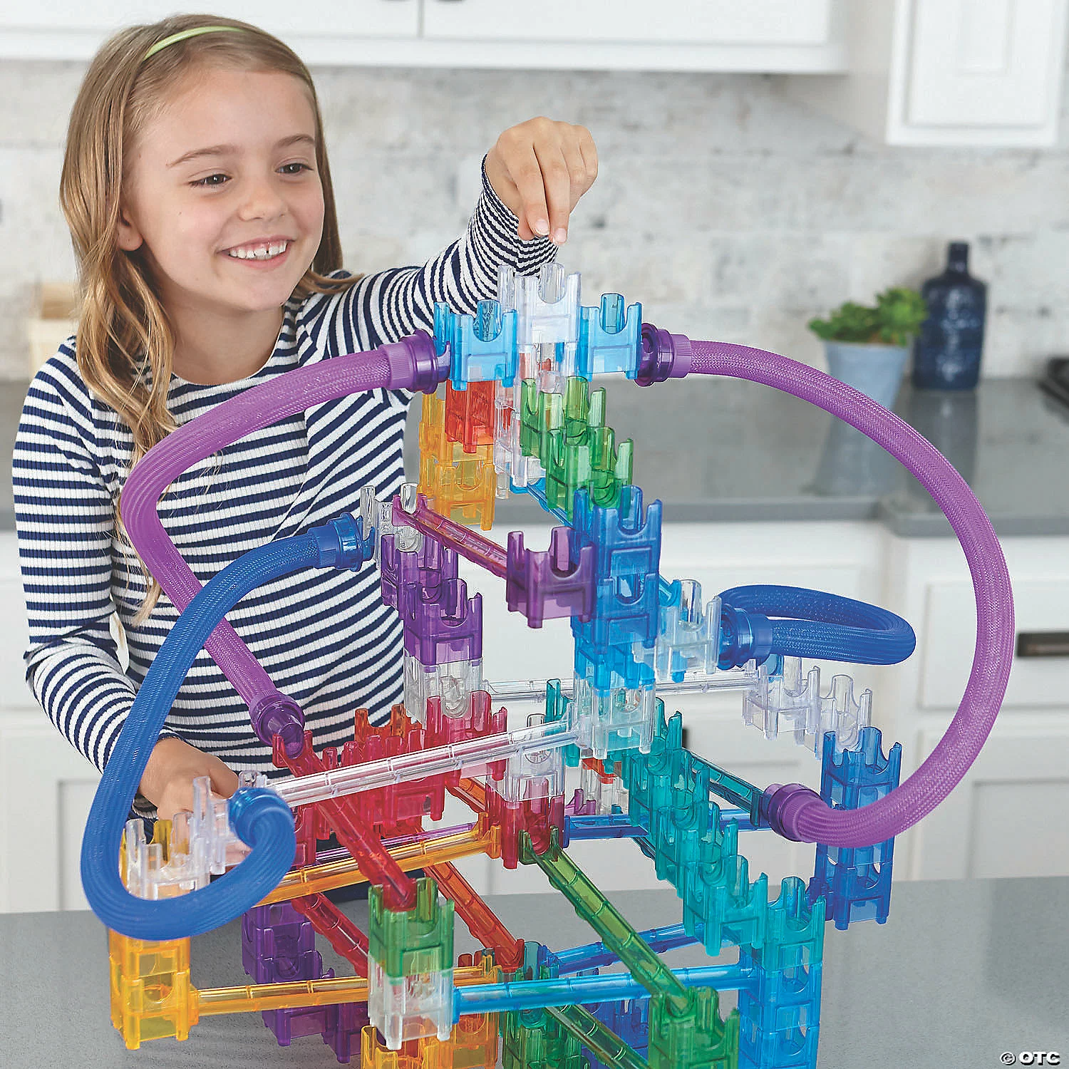 Q-BA-MAZE is a unique system of colorful cubes that interlock to form an exciting marble run. The big difference? The configurations are UNLIMITED: create runs shaped like rockets, robots, butterflies, or whatever design you want!This kit includes:Q-BA-MAZE Rails Extreme, complete with 18 straight-away rails that connect easily to any cube or to each other to create tracks that send your marbles zigzagging through the maze of colorful cubes. With another 82 cubes, 4 coaster tubes, 4 marble catchers and 30 steel marbles, the possibilities are endless!FREE Light-Up Cube Pack of 4 clear light-up cubes works with any Q-BA-MAZE 2.0 set to add a spark of excitment to your build. Each cube lights up as the marbles pass through, flashing red, green, blue or white.⢠Revolutionary cubes create endless paths and artistic build possibilities⢠Encourages imaginative thinking, STEAM skills and cooperative play⢠Follow the step-by-step directions or experiment with your own original creations⢠Well-crafted and durable pieces are made from phthalate-free and BPA-free ABS plastic⢠Double exit cubes allow for several different pathways!⢠Marbles are nickel plated steel balls. They are not magnetsWatch The Building Basics