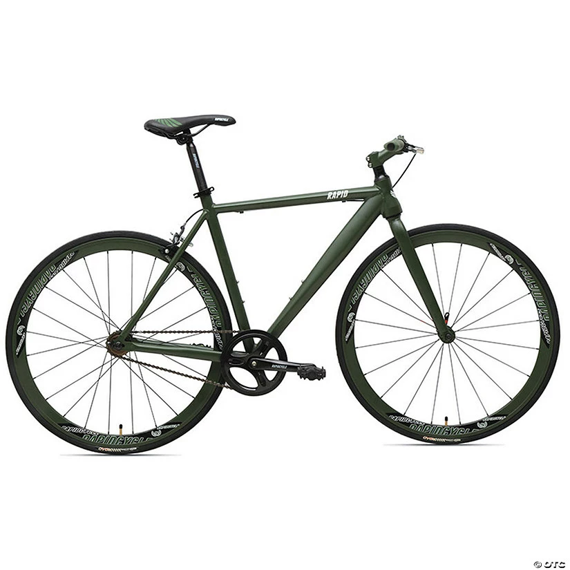 The RapidCycle Evolve surpasses expectations of fixed-gear road bike performance, so light you can lift it with two fingers & designed with best-in-class aerodynamics & riding experience in mind. Available in head-turning colors & arriving to your door with a lifetime warranty, the Evolve is equipped to grab attention, blaze down city streets & provide unlimited fun.• Industry-Leading Lifetime Warranty on Frame & Fork• Extremely light-weight- Easily liftable with two fingers• Aircraft-Grade 7005 Alloy Frame & Fork- Rust-Resistant, Stable, & Agile• Flat Bars- Comfortable, upright riding position & provides larger field of vision• Adjustable Seat- Adjust seat height for your most comfortable riding position• Flip-Flop hub- Easily switch between fixed-gear & single-speed riding• Aerodynamic Geometry• Hydroformed & Double-Butted Frame- Ensures maximum strength, responsiveness, & reliability• 19″ frame height• 28″ wheel height with aluminum rims• Single gear speed• 220lb weight capacity• 90% pre-assembledThis item ships alone in its own packaging that may reveal its contents.