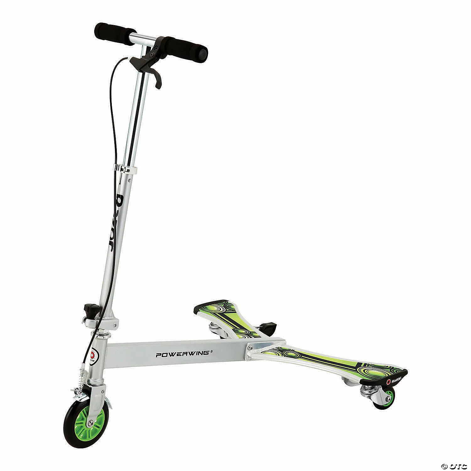 Your child can cruise around the neighborhood in style with this impressive Razor Powerwing DLX Scooter. It features a bright two-toned design with sleek black accents. This Razor Powerwing scooter can accommodate taller and heavier riders. Your child can use it to master sideways drifting and 360-degree spinning. This caster scooter is lightweight and folds up for easy transporting to a park or other play area. It has an adjustable handlebar and an innovative 3-wheel design for added balance. Even beginning riders can feel safe on this deluxe model. Urethane wheels allow this scooter to glide smoothly on a variety of surfaces. The patent-pending brake system and loop-out stoppers of this sleek Razor Powerwing DLX Scooter also provide for enhanced control. No pushing is needed for your child to enjoy heart-pumping side-to-side motion capabilities. This Razor Powerwing scooter is made for children 6-years-old and up.• Designed to accommodate taller and heavier riders• Easy-to-ride three-wheeled caster scooter design• 120mm urethane front wheel, 64mm urethane rear wheels for smooth riding on a variety of surfaces• Razor Powerwing scooter with adjustable handlebar height feature• Folding mechanism for easy transporting and storage• Features a sturdy steel frame• Heart-pumping side-to-side motion capabilities• No pushing needed• Two-toned design with sleek black accents• The Razor Powerwing DLX Scooter features a patent-pending brake system with front-hand control brakes• Loop-out stoppers also help provide your child with enhanced control• Some Assembly required • Product Dimensions. 27.3 x 18.6 x 31.6”H Weight: 11.15 Special Shipping Information: This item ships separately from other items in your order. This item cannot ship to a P.O. Box. This item may be subject to additional processing days. ITEM IS NOT ELIGIBLE FOR EXPEDITED SHIPPING