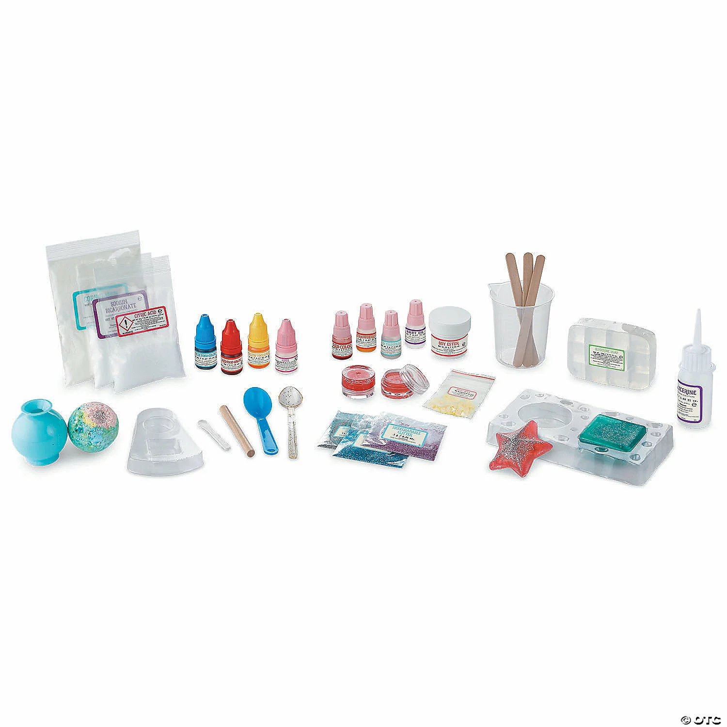 It’s sparkly spa science for kids curious about cosmetic chemistry! Uncover fun facts about fizz while you make glitzy bath bombs. Get the scientific scoop behind suds as you create glimmering soaps, including one ombre bar. You’ll even formulate a high-luster lip balm, just like a real cosmetic chemist. All of the fun science experiments in this chemistry kit are good, clean, super sparkly fun! Prepare to shimmer and shine as you strut your scientific smarts. Plus you can feel good knowing this lab kit is eco-friendly, with 100% biodegradable glitter! • Set up your own cosmetic chemistry lab and make your own sparkly soaps, bath bombs and lip balm!• Encourages an early interest in chemistry and spa science for kids. • Includes soap base, fragrance, red, yellow and blue coloring, sodium bicarbonate, citric acid, cornstach, glycerine, rose fragrance, beakers, soap molds, bath bomb mold, 3 colors of biodegradable glitter, mini spoons, stir sticks, packing stick, lip balm color, lip balm mica, soy ester, wax beads, mineral oil, small spoon, lip balm jar, safety gloves, and instruction guide.• Gluten free