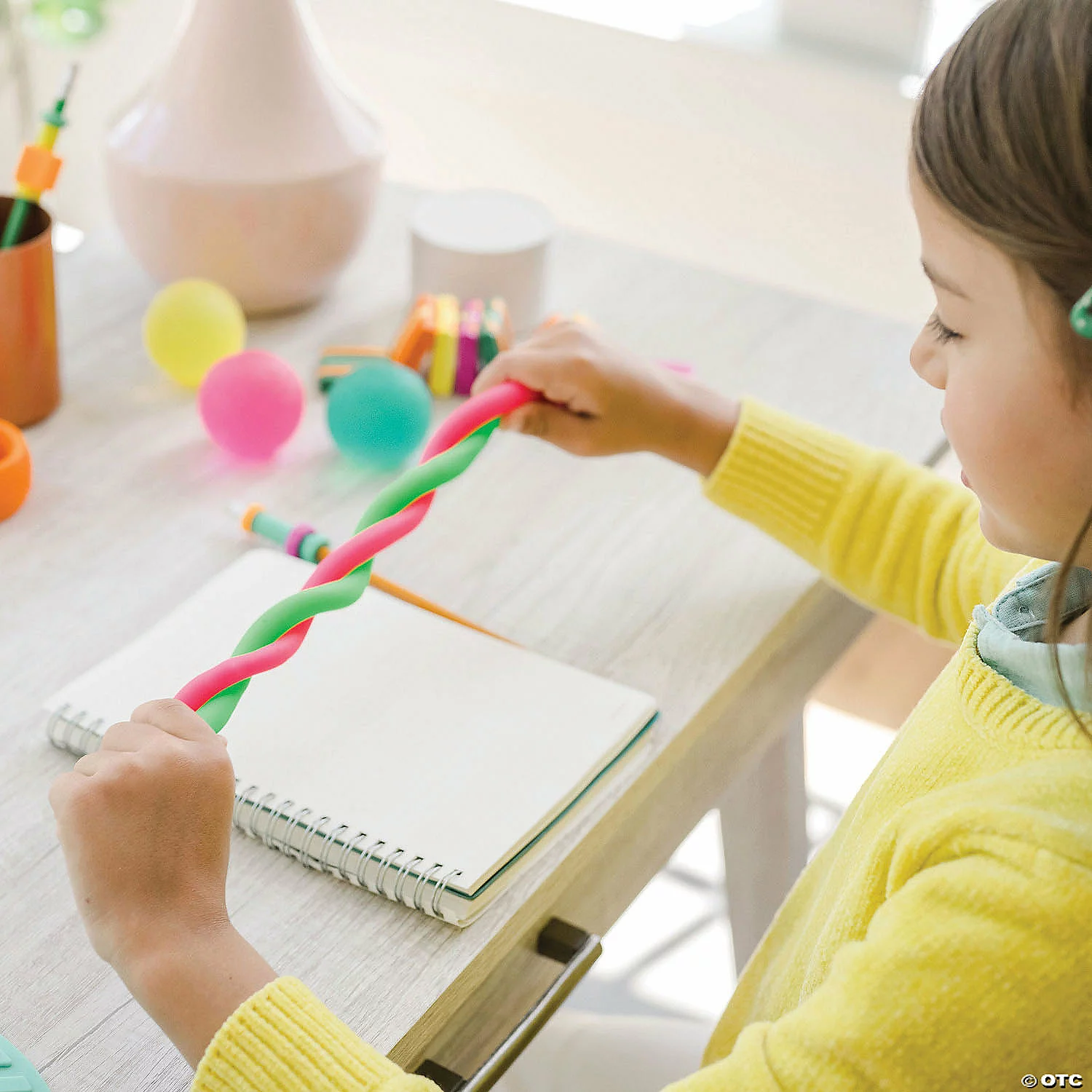 The Sensory Genius collection allows busy hands to be productively active so the mind can focus. When you’re tied up in knots, stretch away the stress! These squishy strings can stretch over 3 feet long and be twisted and twirled around your hands and fingers for uniquely satisfying stimulation. This quiet activity builds finger, hand and arm strength while relieving tension in your neck and shoulders. Each pack includes 2 Stretchy Strings.