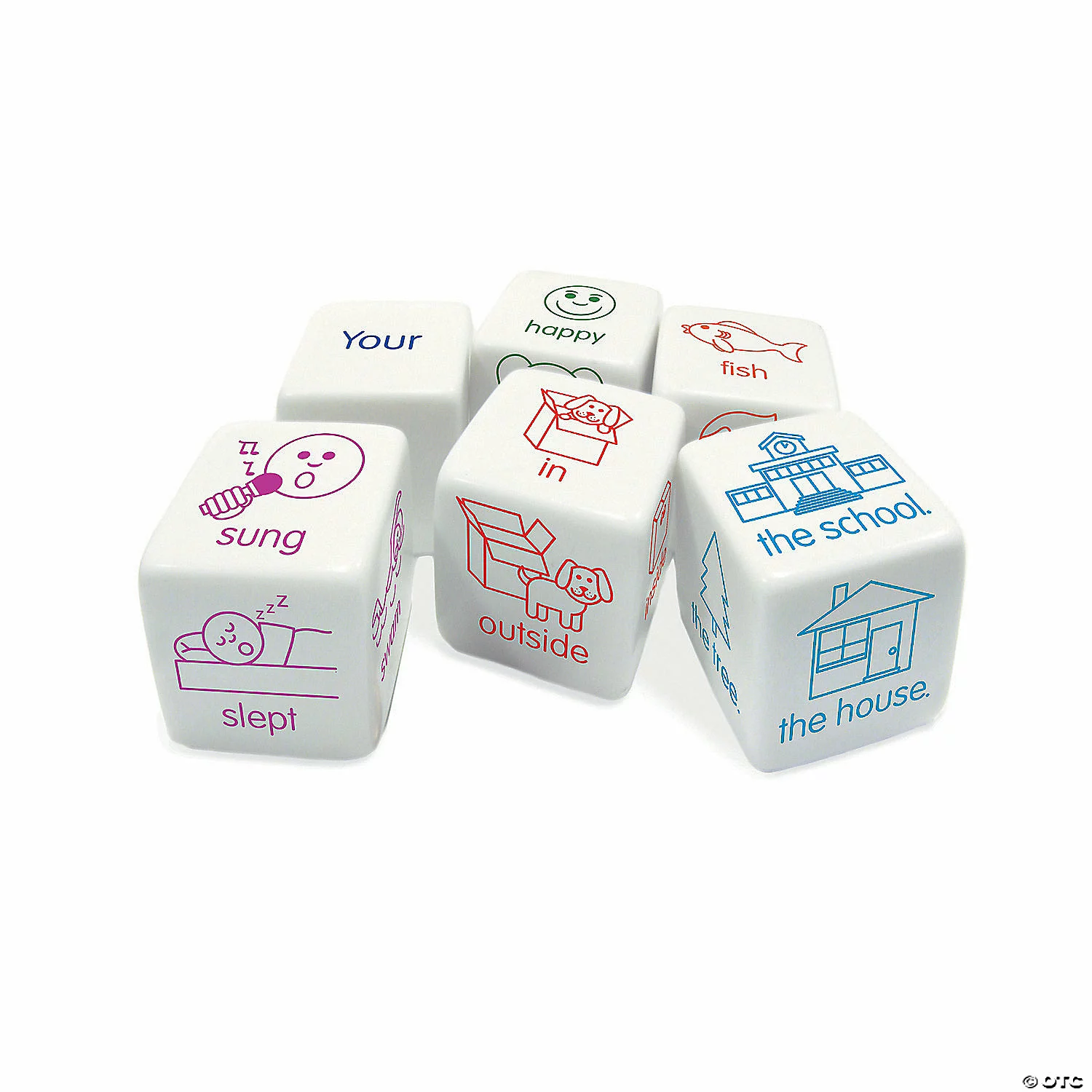 Sentence Dice are a collection of six soft dice for building sentences. Covers different parts of speech (such as nouns, verbs, prepositions) for building sentences. Photographic images used to support learning.Special Shipping Information: This item ships separately from other items in your order. This item cannot ship to a P.O. Box. This item may be subject to additional processing days. ITEM IS NOT ELIGIBLE FOR EXPEDITED SHIPPING