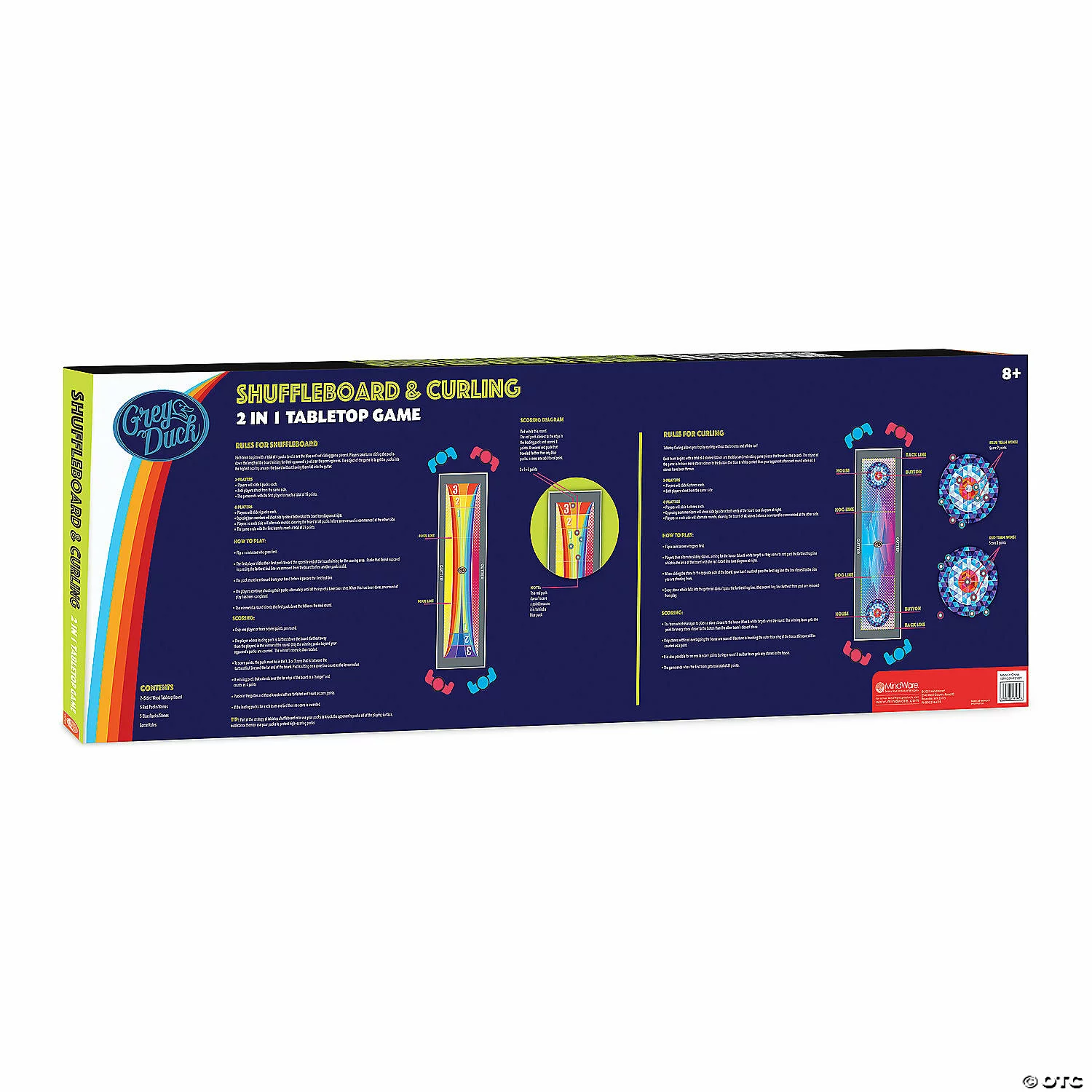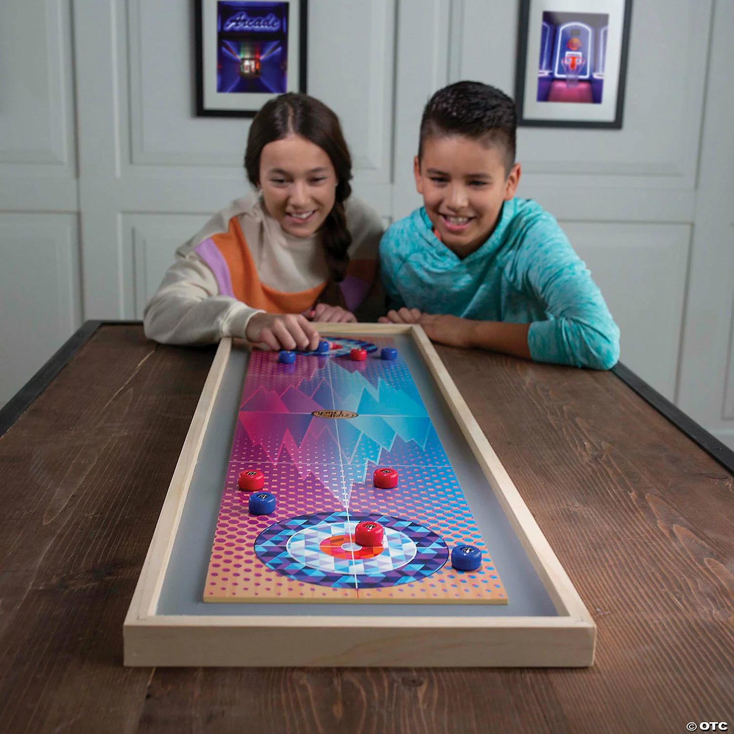 Get your game on with this two-in-one activity! Featuring shuffleboard on one side and curling on the other, most any table surface can be turned into an arena ripe for friendly competition. When one game ends, just flip the board for a fresh activity!• 2-in-1 tabletop game with shuffleboard on one side and curling on the other• Over 3 feet long!• Quality wood construction with smooth sliding pucks• Start playing right out of the box with no assembly required • Includes a two-sided wood tabletop board, 5 red pucks, 5 blue pucks and game rules